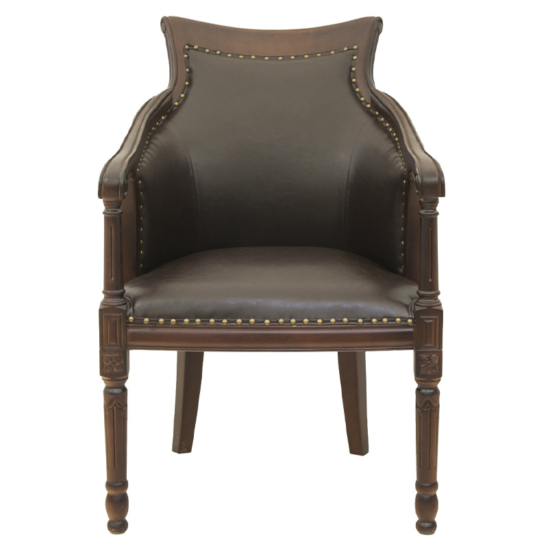 Кресло кожаное на 4-х деревянных ножках из массива березы Ethan Armchair brown
