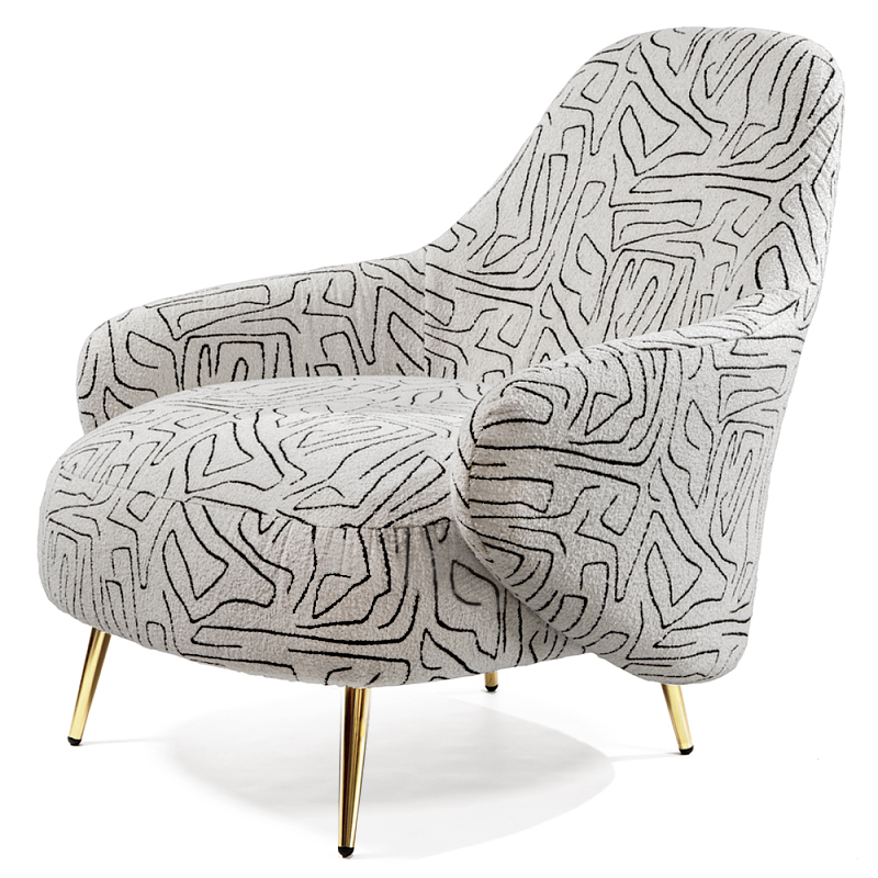 Кресло мягкое с принтом на золотистых ножках Onlooker