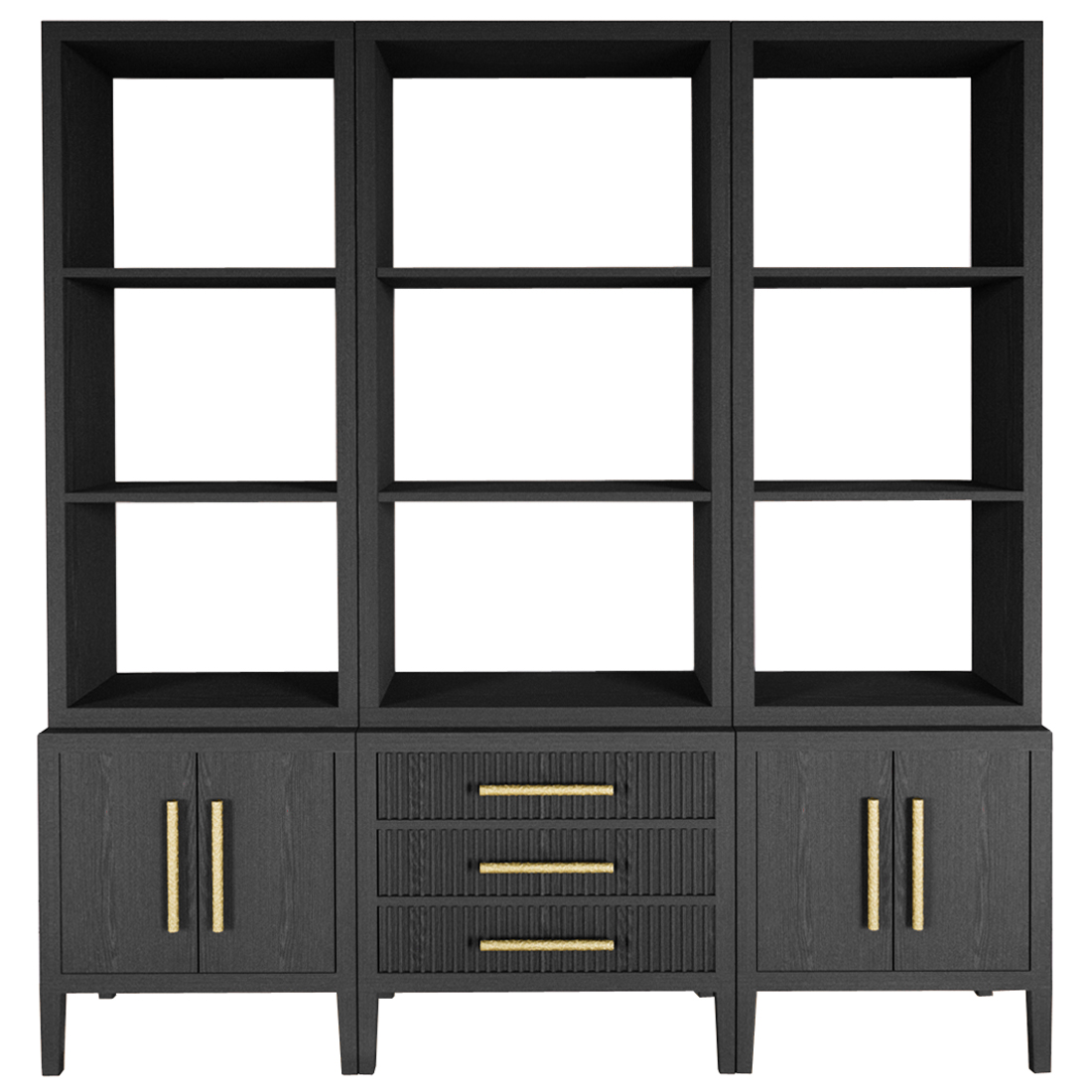 Модульный стеллаж Primo из трех составных элементов Черный дуб